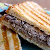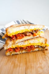Vegan cheddar, roasted red peppers, and red onions on sourdough
