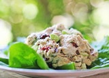 Spring mix, cucumbers, cherry tomatoes, and chicken salad